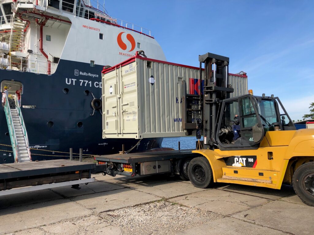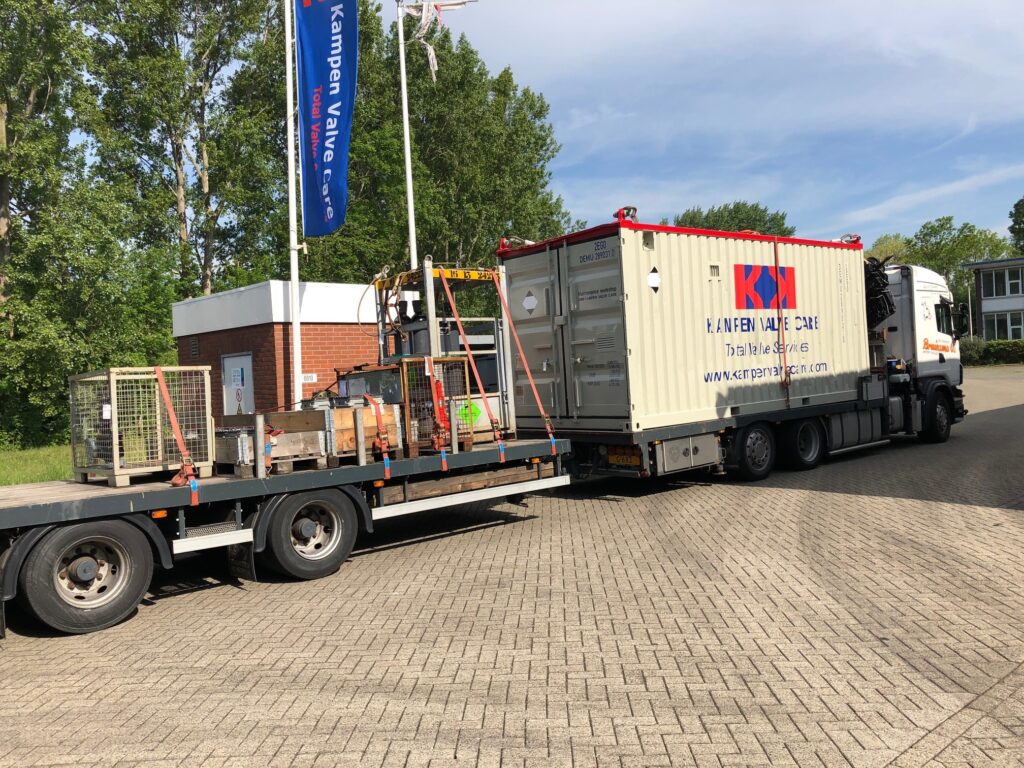 KVC is gearing up for first off-shore of the year after COVID-19. Our 20 ft mobile workshop incl spare valves and necessary parts for assembly and disassembly is loaded and transport to Den Helder from where it will sail off-shore.